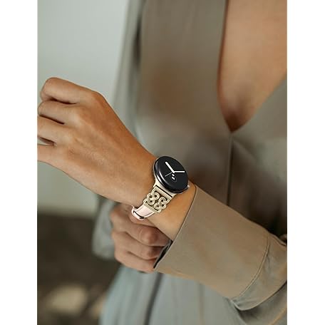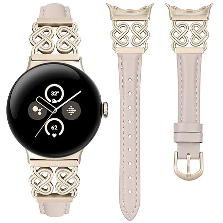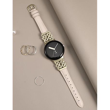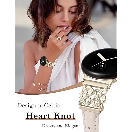 Minyee Celtic Heart Knot Leather Band Compatible with Google Pixel Watch 4/3 41mm/Pixel Watch 2/1 Band Women, Slim Thin Premium Leather Dressy Fashion Fancy Metal Buckle Adjustable Strap