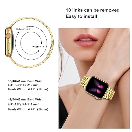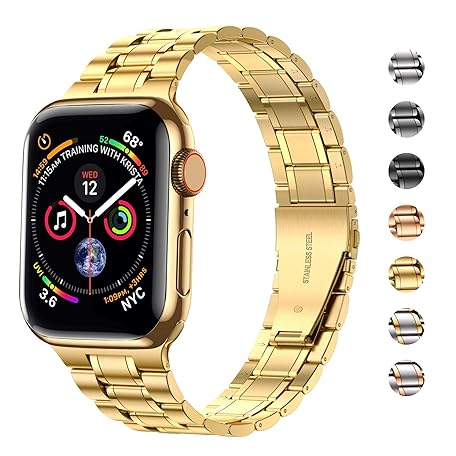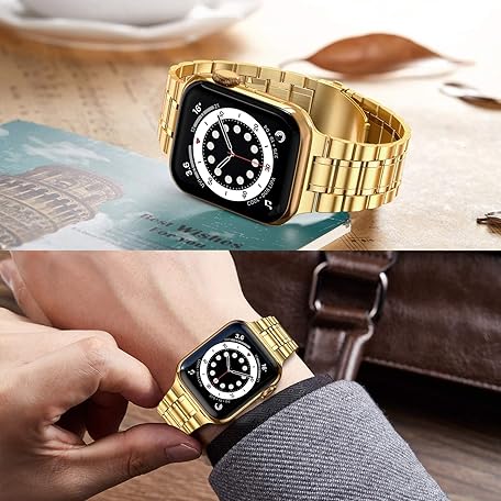 Sản phẩm MioHHR Solid Stainless Steel Band Compatible with Apple Watch 38mm(Series 3/2/1) 40mm(Series SE/6/5/4) 41mm(Series 9/8/7) Metal Strap with Soft TPU Case for iWatch Bands for Women and Men, Gold đang được bán với giá ưu đãi là $16.3391 tại nước Mỹ.
