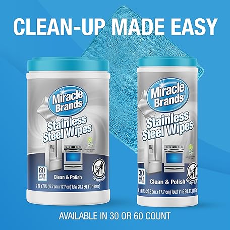 Thông tin sản phẩm MiracleWipes for Stainless Steel, Great for Kitchen and Appliances, Including Oven, Refrigerator, Dishwasher, Microwave, Sink, Hood, Grill, Removes Fingerprints and Smudges - 60 Count