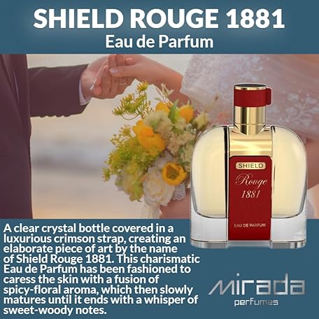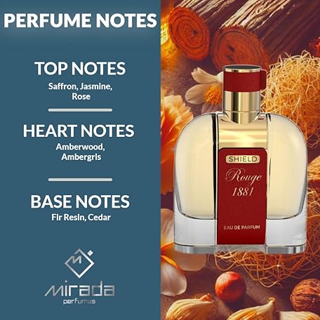 Thông tin sản phẩm MIRADA Shield Rouge 1881, Unisex Eau de Parfum (EDP) 3.4 FL. Oz (100ml), Unisex Perfume with Notes of Saffron, Jasmine, Rose, Amberwood, Ambergris, Fir Resin, Cedar