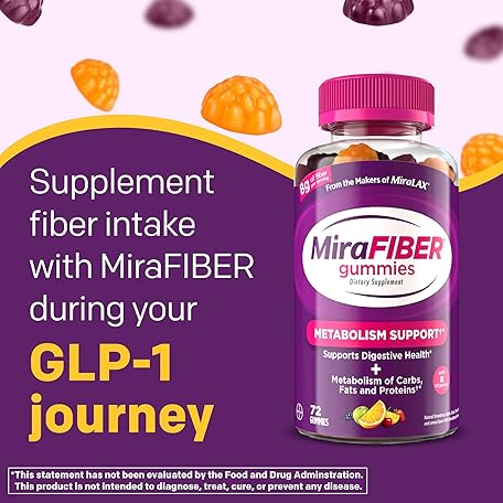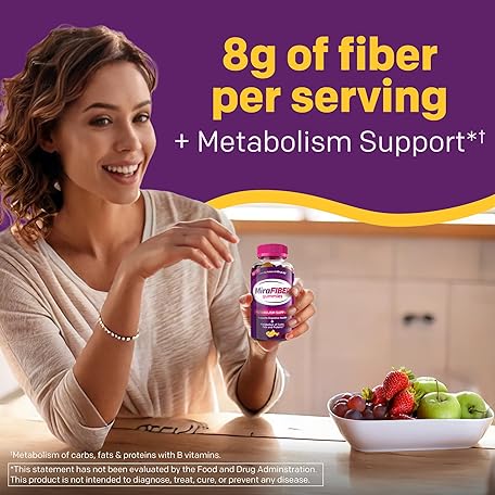 Thông tin sản phẩm MiraFIBER Gummies from the Makers of MiraLAX, 8g of Daily Fiber Per Serving, Metabolism Support with B Vitamins, Gut Health for Men & Women, Prebiotic Fiber Gummies for Adults, Mixed Fruit Flavor 72Ct