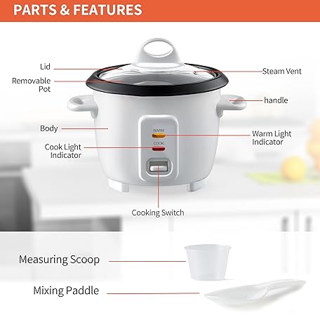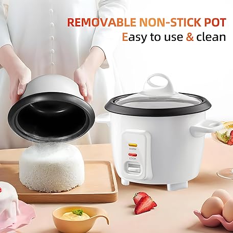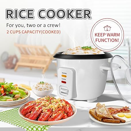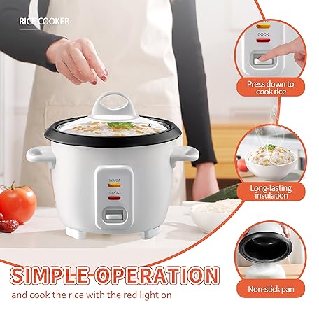 Thông tin sản phẩm Mishcdea Mini rice cooker Uncooked), Electric Rice Cooker Small with Removable Nonstick Pot & Food Steamer, 12H Automatic Keep Warm, for Rice, Soups, Stews, Grains, Oatmeal (white-2cup)