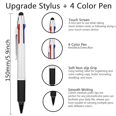 Sản phẩm MiSiBao 4-Color Ballpoint Pen Multi Colored Pens in One Medium Point (1.0mm) Touch Screen Stylus, 5-Count đang được bán với giá ưu đãi là $7.6191 tại nước Mỹ.