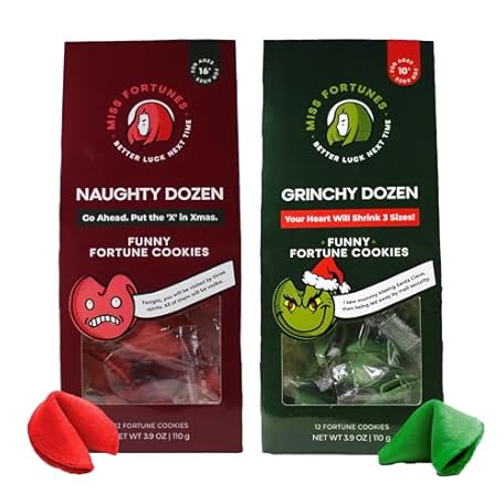 Miss Fortunes, Funny Fortune Cookies, The Naughty + Grinchy Two-Pack, Written by Professional Comedy Writers (12 Count (Pack of 2), Naughty Dozen & Grinchy Dozen)