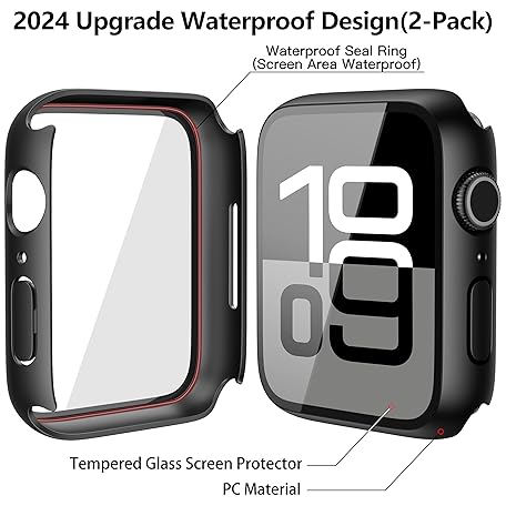 Misxi [2 Pack] Waterproof Hard Case with Tempered Glass Compatible with Apple Watch Series 11 (2025) Series 10 46mm, Ultra-Thin Anti-Fall Protective Cover for iWatch Screen Protector, Matte Black