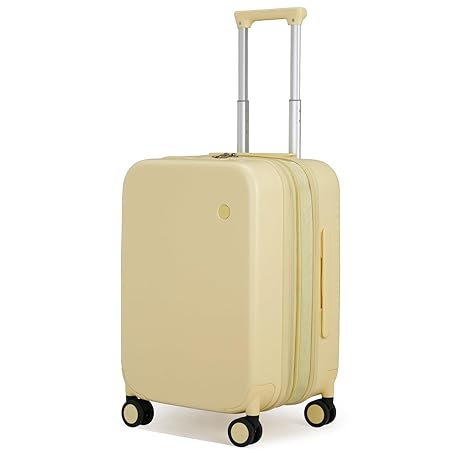 mixi 20 Inch Expandable Carry on Luggage 22x14x9 Airline Approved Suitcases with Spinner Wheels, Hardside Rolling Travel Suitcase PC with TSA Lock & Cover, Lark Yellow