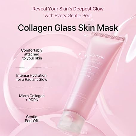 mixsoon Collagen Glass Skin Mask - Hydrating and Firming Collagen Wrapping Peel Off Mask, Low Molecular Collagen, Radiant Smooth Finish for Glowing Skin 80ml / 2.71 fl.oz. Korean Glass Skin Care