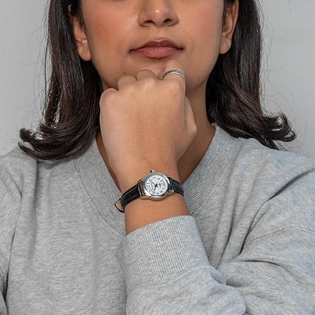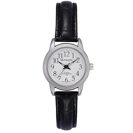 Miykon Ladies Watches for Women - Dainty Womens Watch Analog with Black Vegan Leather Strap - Second Hand, Ion Polished, Scratch Resistant Glass, Japanese Quartz, Waterproof to 100ft