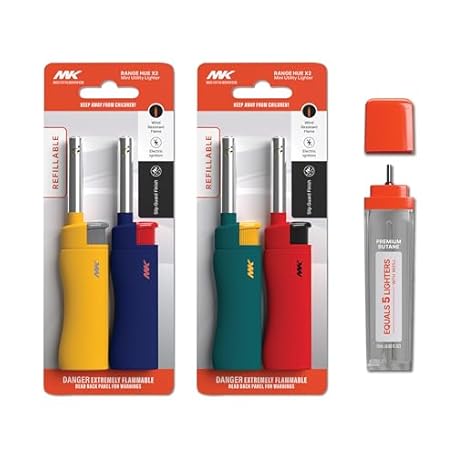 MK 4PCS Candle Lighters with 1PC Premium Butane Set, Windproof Flame, Ideal for Candle, BBQ Lighters