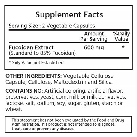 Thông tin sản phẩm ML Naturals Extra Srength Fucoidan 600mg 60 Vegetable Capsules. Wild Wakame Extract. Supports Immune & Antioxidant System, NSF Certified & cGMP- Compliant Facility, Third-Party Lab Tested