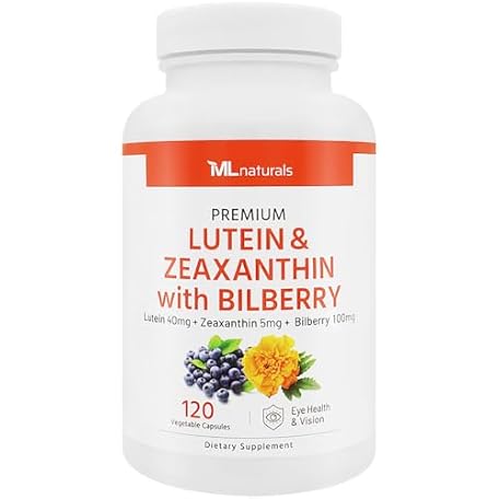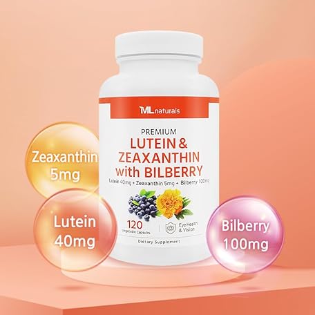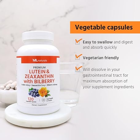 Thông tin sản phẩm ML Naturals Premium Lutein & Zeaxanthin with Bilberry 120 Vegetable Capsules. Lutein 40 mg, Zeaxanthin 5 mg, and Bilberry 100 mg. Premium Quality. Healthy Eyes & Vision, NSF-Certified & cGMP-Compliant