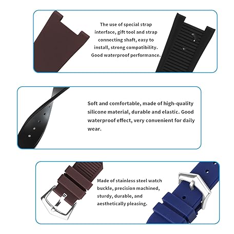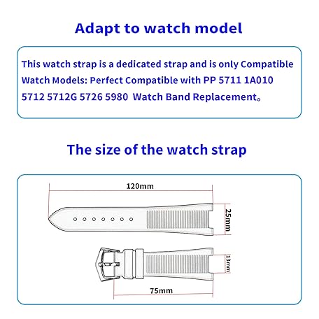 MMBAY Rubber 25mm* 13mm Watch Bands Compatible Fit for Patek Philippe Nautilus PP 5711 1A010 5712 5712G 5726 5980 Replacement Silicone Watch Strap Wirstband Bracelet with Tang Buckle For Men and Women