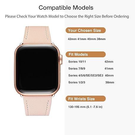 Sản phẩm MNBVCXZ Compatible with Apple Watch Band 38mm 40mm 41mm 42mm 44mm 45mm 46mm 49mm Women Men Genuine Leather Replacement Strap for iWatch Series 11 10 9 8 7 6 5 4 3 2 1 SE Ultra (Pink Sand/Rose Gold) đang được bán với giá ưu đãi là $9.9299 tại nước Mỹ.