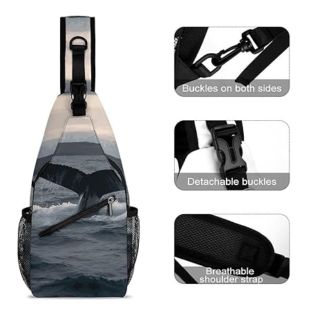 MNVTSKOP Humpback Whale Tail Ocean Sling Backpack Travel Crossbody Shoulder Bag Adjustable Chest Pack for Women Men