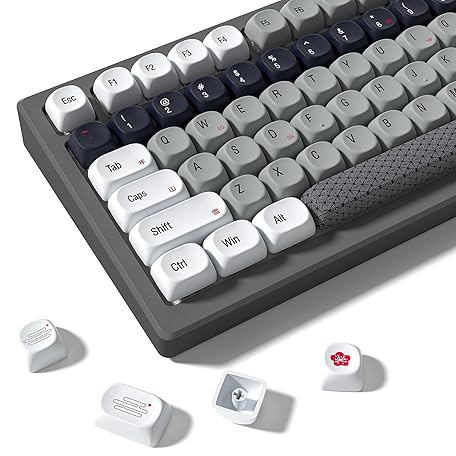 MOA Profile PBT Keycaps,132 Keys Janese Style Gray White Red Keycap Set, Dye-Sublimation, MOA Profile, Cute Anime Theme for Most 60% 65% 75% 80% 100% US Layout Cherry MX Switches Mechanical Keyboard