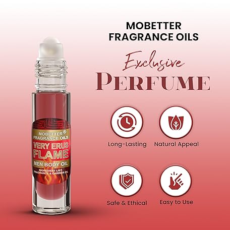 Thông tin sản phẩm MOBETTER FRAGRANCE OILS Very Erus Flame Men Body Oil (10ml Roll On), Travel Size, Aquatic Scent, Top notes are Mandarin Orange, Madagascar Pepper, Lemon, Chinotto and Rosemary