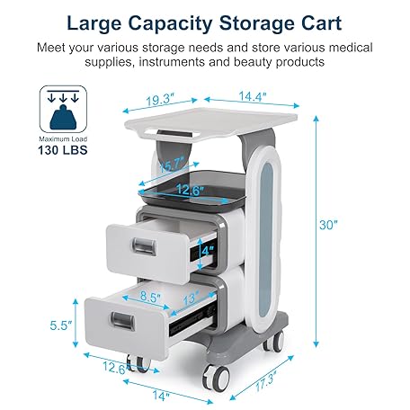 Sản phẩm Mobile Medical Trolley Cart 130 Lbs Load Portable Professional for Ultrasound Imaging Scanner Vehicle Beauty Storage Cart with Drawers Tool Tray Wheels for Home Hospital Office Medical Clinic đang được bán với giá ưu đãi là $316.0891 tại nước Mỹ.