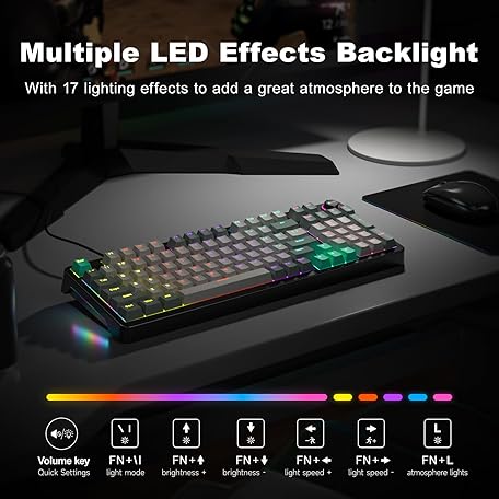 Thông tin sản phẩm MOFII AK96 Mechanical Gaming Keyboard, Full Keys LED Backlit Programmable, Plug and Play USB A/C Wired Computer Custom Keyboard with Sound/Light Control Knob for Win/Mac - Gray & Black