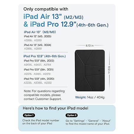 MOFT Dynamic Folio Case for iPad Air 13-inch (M3 2025 / M2 2024),Silm Magnetic Stand Case with 20+ Viewing Angles, Auto Wake/Sleep,Ultra Thin, Jet Black