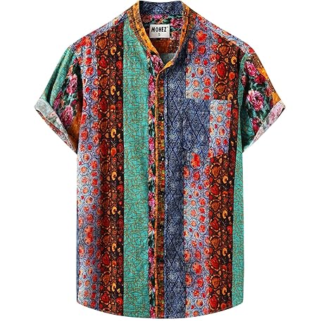 MOHEZ Men Hawaiian Shirt Floral Short Sleeve Shirts Summer Vacation Print Casual Button Down Beach Shirt