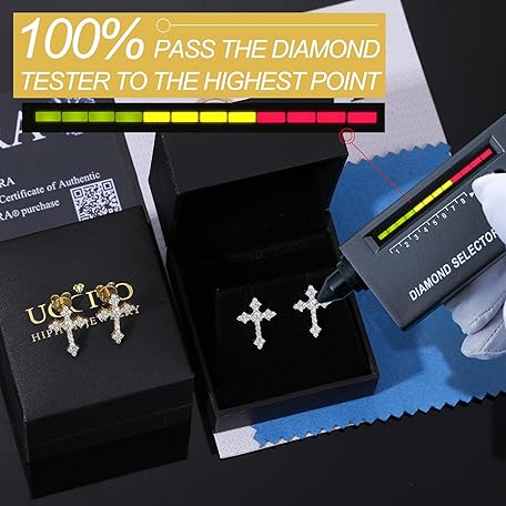Thương hiệu Ucciyo là cái tên nổi tiếng được rất nhiều khách hàng trên thế giới chọn lựa. Với kiểu dáng đẹp mắt, sang trọng, sản phẩm Moissanite Cross Earrings for Men Women, Sterling Silver Cross Stud Eearrings D Color VVSI Moissanite Stud Earrings Crucifix Jewelry Gift là sự lựa chọn hoàn hảo nếu bạn đang tìm mua một món cho riêng mình.