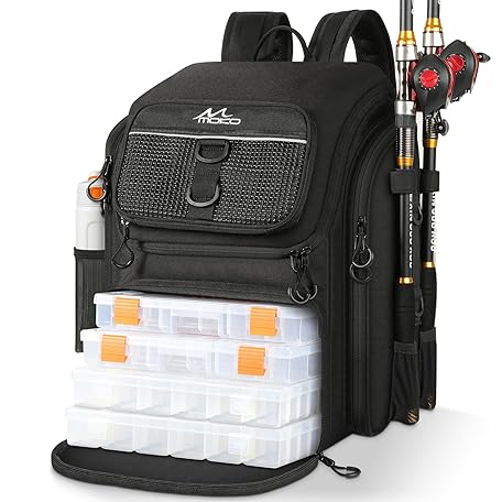 MoKo Fishing Backpack Bag, Large 40L Tackle Backpack with Rod Holders & Bait Binder Storage Fishing Gear and Equipment for Hiking Camping, Gifts for Men Father, Black