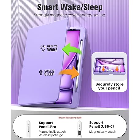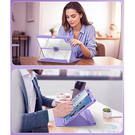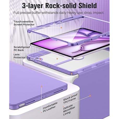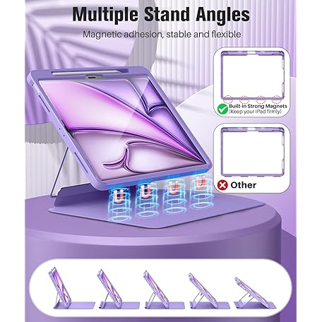 MoKo for iPad Air 13 Inch Case M3 2025 & M2 2024 with Pencil Holder, iPad Air 13 Case [Built-in Screen Protector] with Clear Back & Magnetic Multi Angle Stand Cover, Purple