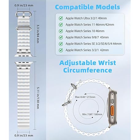 Sản phẩm MoKo Ocean Band Compatible with Apple Watch Ultra 3/2/1 49mm, Upgraded Silicone Sports Bands 46mm 45mm 44mm for Men Women, Series 11/10/9/8/7/6/5 SE3/2/1 Breathable Strap with Metal Connector đang được bán với giá ưu đãi là $17.5926 tại nước Mỹ.