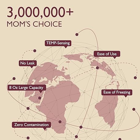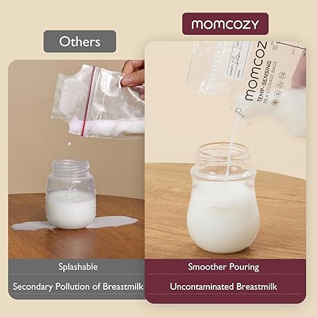 Thông tin sản phẩm Momcozy Easy Pour Breastmilk Storage Bag, 8Oz, Temp-Sensing Color Change, 120 Count Milk Bag with Self Standing for Breastfeeding, No Leak Presterilized for Freezer, Recyclable & BPA Free