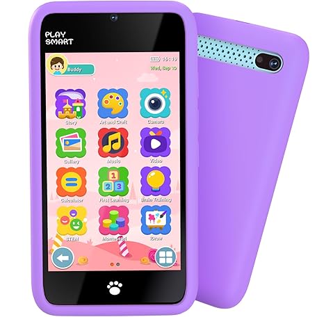 MOMILLA Kids Smart Phone Toys for Girls, 3.97” Touchscreen, Dual Cameras with Stickers, 200+ Games & 16GB Storage, Christmas Birthday Gifts for Kids Age 3-10, Educational Mini Toddler Play Phone Toy