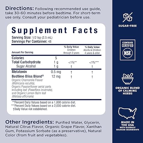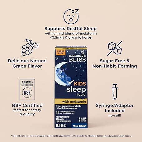 Sản phẩm Mommy's Bliss Kids Sleep Liquid with Melatonin & Calming Herbs | Supports The Natural Sleep Process for Children 3 Years & Up | Grape Flavor | Sugar Free| 4 Fl Oz (60 Servings) đang được bán với giá ưu đãi là $9.2432 tại nước Mỹ.
