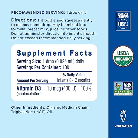 Sản phẩm Mommy’s Bliss Organic Vitamin D Drops - Infants and Newborns - Supports Growth and Bone Development - Easy Use - 400 IU Per Drop - 100 Daily Servings đang được bán với giá ưu đãi là $13.6141 tại nước Mỹ.
