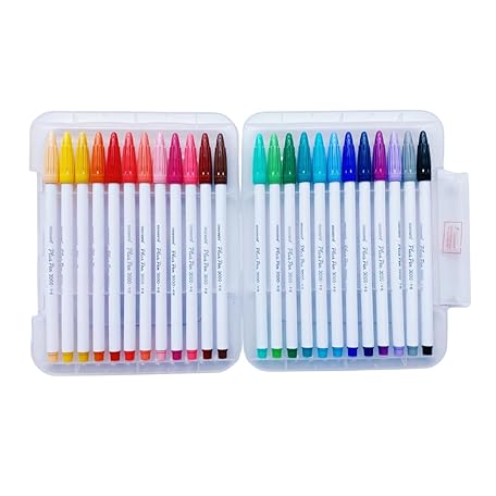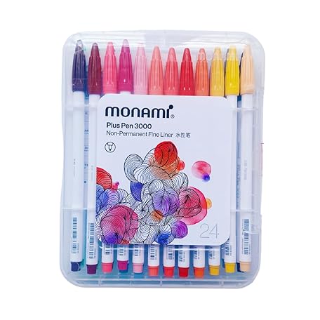 Monami Plus Pen 3000 | Set of 24 Fine Nibs | Water-Based Ink | Assorted Colours | Rigid Plastic Case | For Writing and Drawing