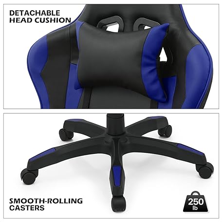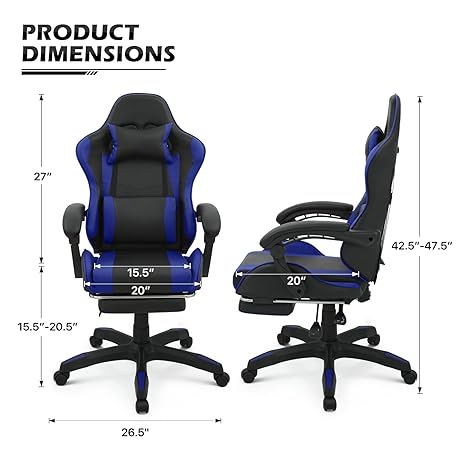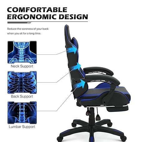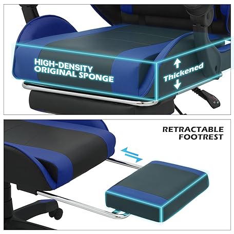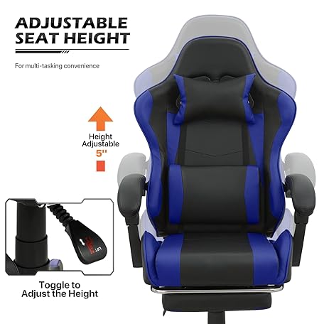 Thông tin sản phẩm MoNiBloom Gaming Chair with Headrest & Lumbar Support Ergonomic Computer Racing Chair with Footrest, Adjustable Hight Leather Swivel Computer Chair for Adult Teen Office or Gaming, Blue