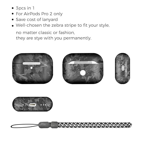 Thông tin sản phẩm MONOCARBON Real Carbon Fiber Case for Airpods Pro 2nd Generation with Lanyard,AntiScratch Slim Protective Hard Cover for Airpods Pro 2 Compatible with Magsafe Wireless Charging-Forged Matte Black