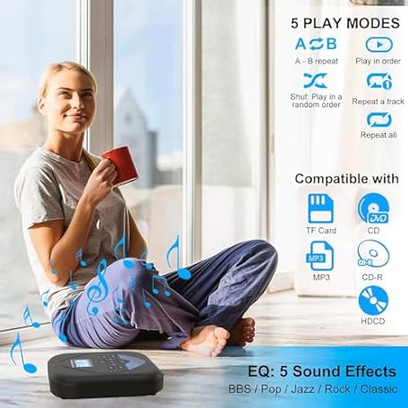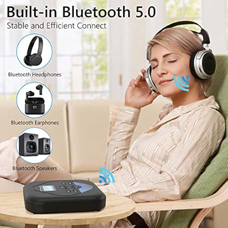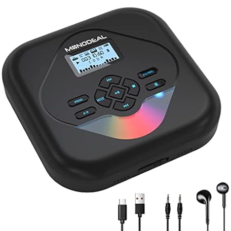 Thông tin sản phẩm MONODEAL CD Player Portable,Bluetooth CD Player with Speakers,Rechargeable Player for Car and Home,Small Anti-Skip Player with Dual Headphone Jacks,WAV/FLAC/MP3/CD Compatible