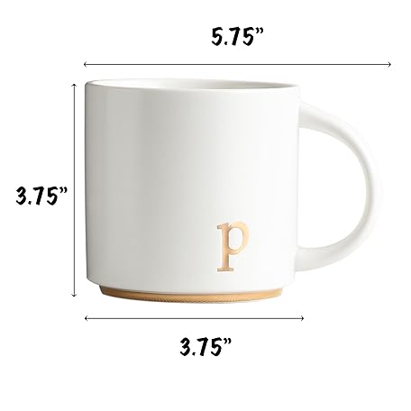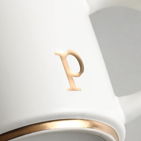 Monogram Ceramic Mugs, 15 oz Golden Initial Coffee Cups, Elegant Alphabet Tea Mugs, Elegant Personalized Mug with Gift Box, Luxurious Cups for Office and Home (p)