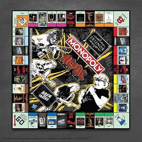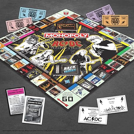 Thông tin sản phẩm MONOPOLY AC/DC | Play as Angus’s Hat, Dynamite, Lightning Bolt & more | Includes Popular Albums and Locations AC/DC Lane, For Those About to Rock, TNT, and more | Officially Licensed AC/DC Collectible