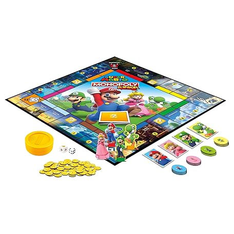 Thông tin sản phẩm Monopoly Junior Super Mario Edition Board Game, Fun Kids' Ages 5 and Up, Explore The Mushroom Kingdom as Mario, Peach, Yoshi, or Luigi (Amazon Exclusive)