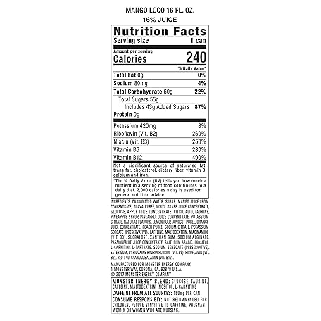Thông tin sản phẩm Monster Energy Juice Monster Mango Loco, Energy + Juice, Energy Drink, 16 Ounce (Pack of 24), 384 Ounce