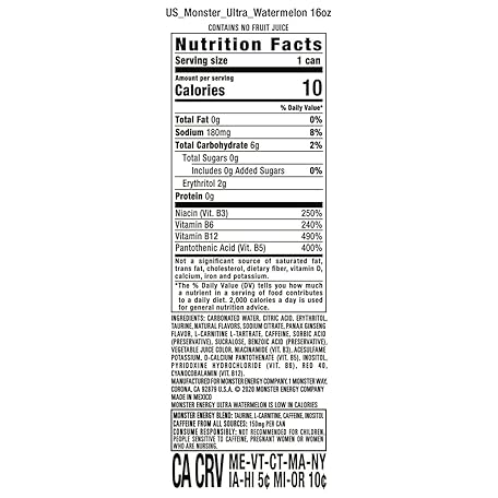 • Monster Mix Energy Ultra Watermelon, 16 Fl Oz (Pack of 24) Net Wt 384 Fl Oz
