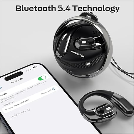 Thông tin sản phẩm Monster Open Ear Headphones AC330, Wireless Earbuds Bluetooth 5.4 with Clear Talk, Stylish Rotating Case with Lanyard, Type-C Charging, Comfort Fit, 24H Playback, IPX5 Water Resistant, Black