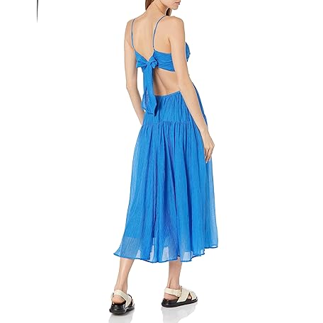 Moon River Womens Shirred Tiered Cutout Back Tie Midi DressDress