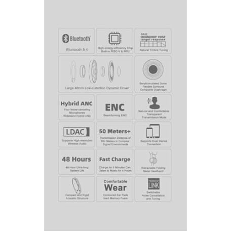 • Moondrop Edge Full-Scene Immersive Series Hi-Fi Portable Wireless ANC Headphone Foldable Lightweight Headphone (Creamy White)