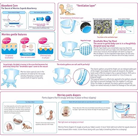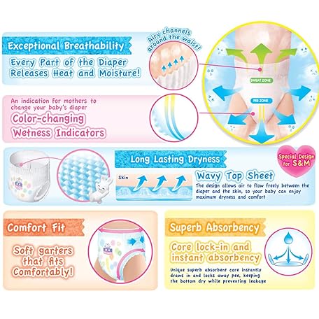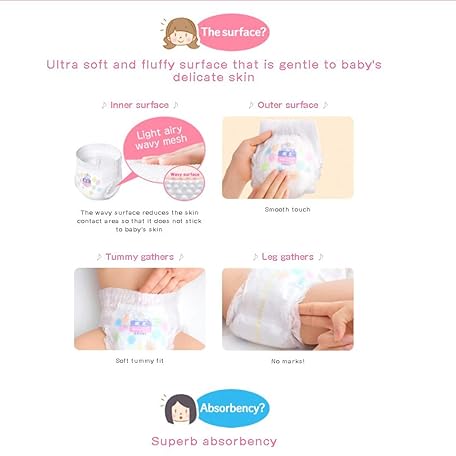 Thông tin sản phẩm Moony Merries Pants Diaper Bundle, 44 Counts, Unisex, Size Large (20-31 lbs), Safe Materials, No Chemical Odor, Ultra-Soft, Breathable, Indicator Prevents Leakage