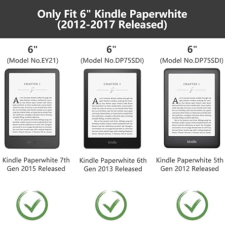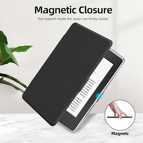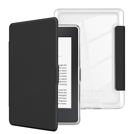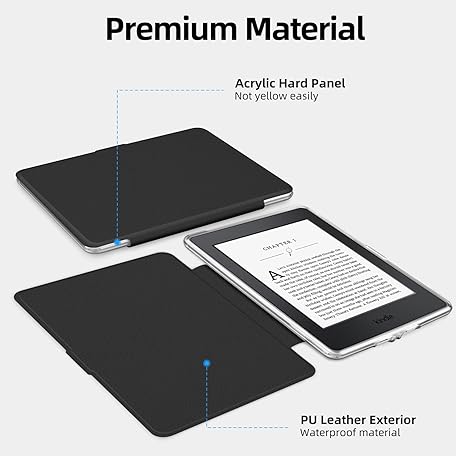 MOROCK Case for 6" Kindle Paperwhite 5th/6th/7th Generation 2012-2017 Released(Model No. EY21 & DP75SDI), Premium Lightweight PU Leather and PC Clear Acrylic Back Cover, Auto Wake/Sleep, Black