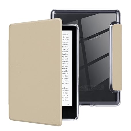 MOROCK Slim Case for 6" Kindle Paperwhite 10th Generation 2018 Release(Model No. PQ94WIF), Premium Lightweight PU Leather and PC Clear Acrylic Back Cover, Auto Wake/Sleep E-Reader, Oat Coffee