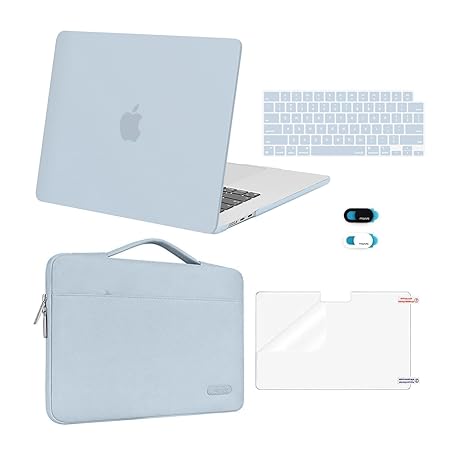 MOSISO Compatible with MacBook Air 15 inch Case 2025 2024 2023 Release M4 A3241 M3 A3114 M2 A2941, Plastic Hard Shell&Carrying Sleeve Bag&Keyboard Cover&Webcam Cover&Screen Protector, Baby Blue