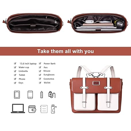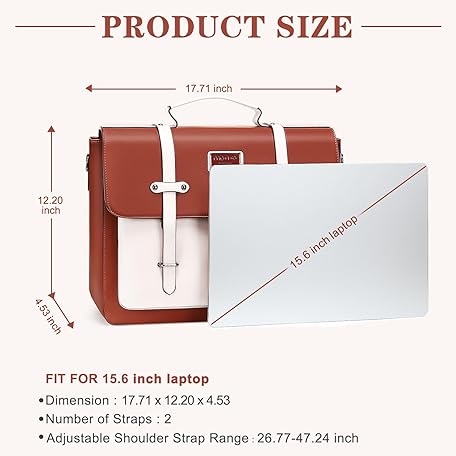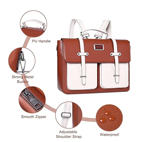 Thông tin sản phẩm MOSISO Laptop Bag for Women, 15-15.6 inch Laptop Backpack Messenger Shoulder Bag with Front 2 Pockets for Business, Travel, Work, Office, Brown