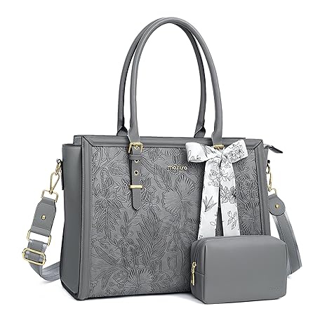 Sản phẩm MOSISO Laptop Bag for Women, PU Leather Tote Bag, Front Embossed Retro Hibiscus Computer Bags with Silk Scarf&Clutch Purse đang được bán với giá ưu đãi là $39.2291 tại nước Mỹ.